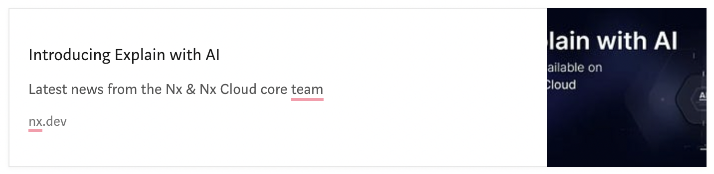 Following the introduction of AI into Nx’s documentation (via AI Chat) and Nx Cloud (via Tusky), a new Explain With AI feature is now available. This tool helps developers quickly understand complex errors and provides suggestions for improvements, streamlining the debugging process.