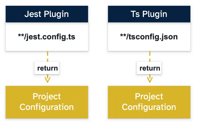 For example, if one project contains a jest.config.ts file and a tsconfig.json file, two plugins can generate a related configuration for that project. Then both configurations will be merged.