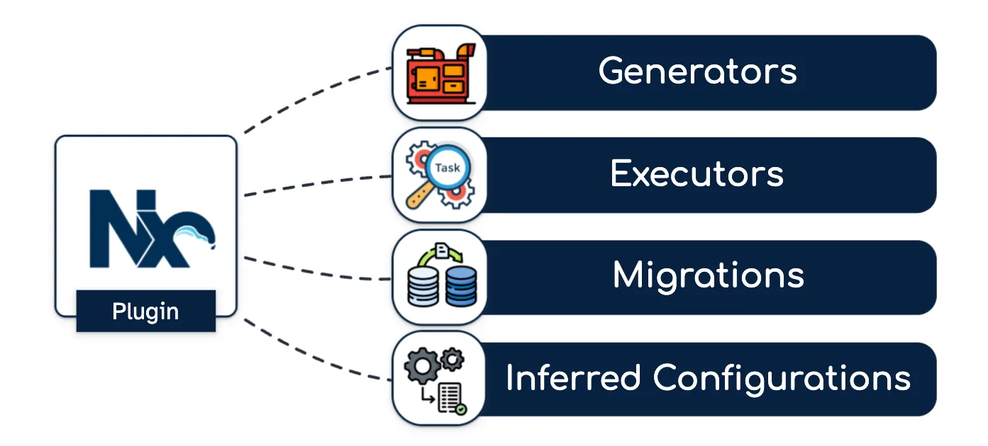 An Nx plugin can serve multiple features (generators, executors, inference, etc.). And all of these features will be used: